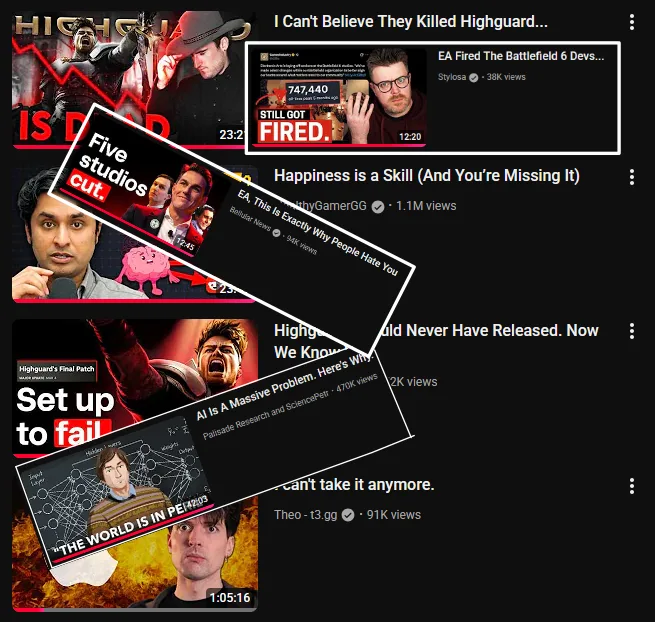 It's probably my algorithm but the flood of negativity feels like it's coming to a head. 2025 felt like a ramp up, and I'm either hitting the horizon or realizing there's more to this climb and I can't help but begin to feel tired. Most likely it's the amount of hours I spend on YouTube just filling the silence so I don't have to hear the same thoughts over and over shitting on myself for everything. Whatever interest I've shown in gaming news, world news, creator drama and politics is mostly passive and creates a sense of unease in the back of my mind.